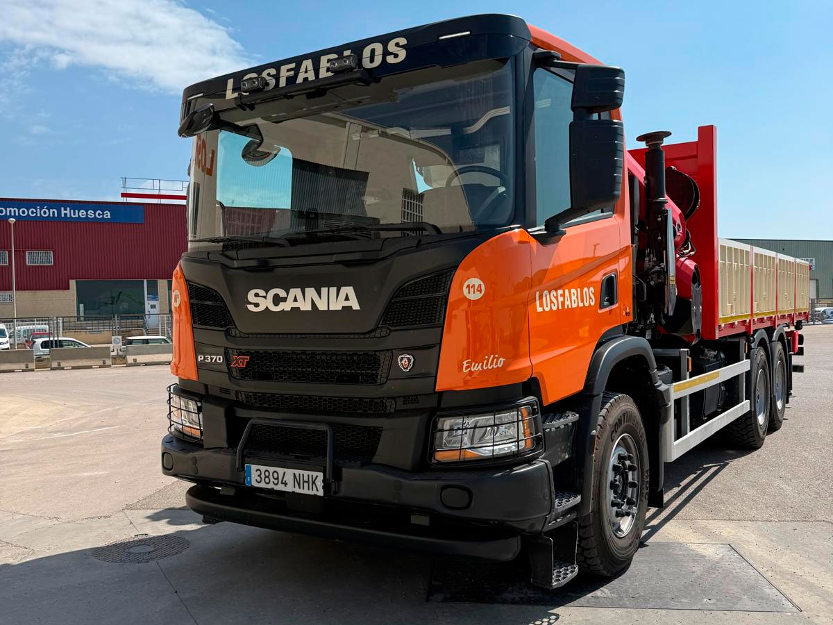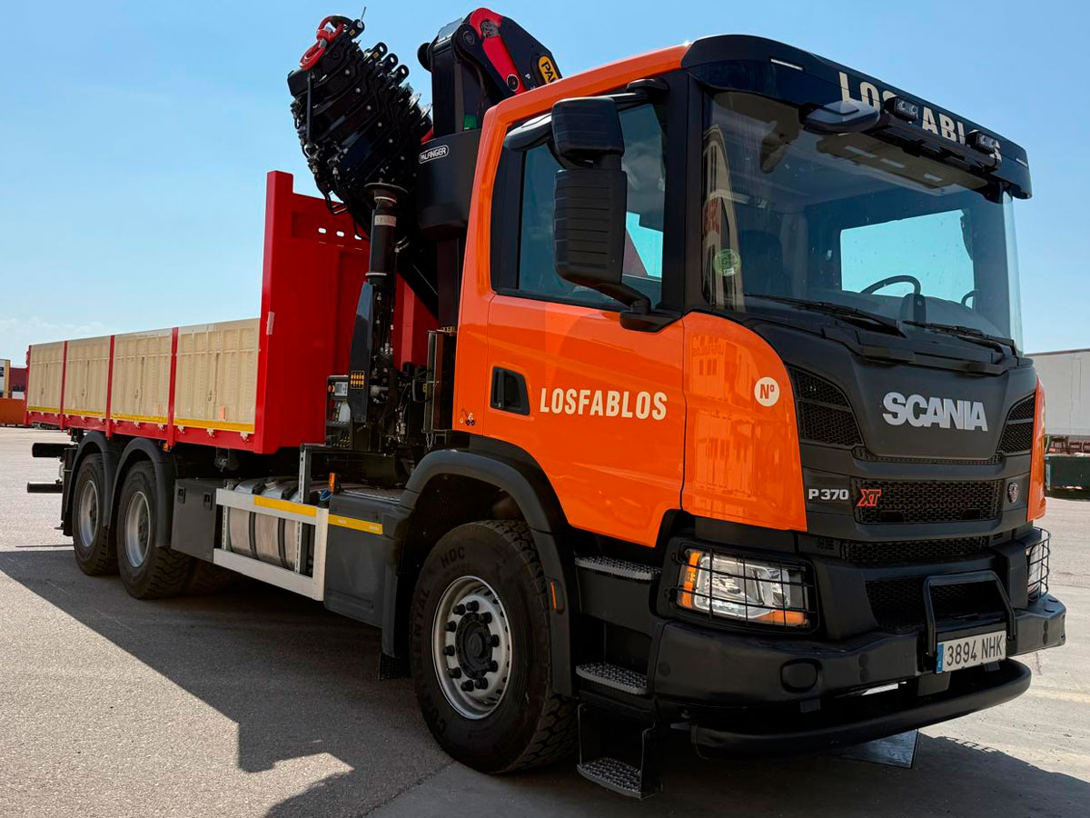 Grúas Losfablos ha ampliado su flota con la adquisición de un camión grúa Scania P 370 XT 6×4, un vehículo diseñado para trabajos de alta exigencia de subida de materiales a alturas considerables.