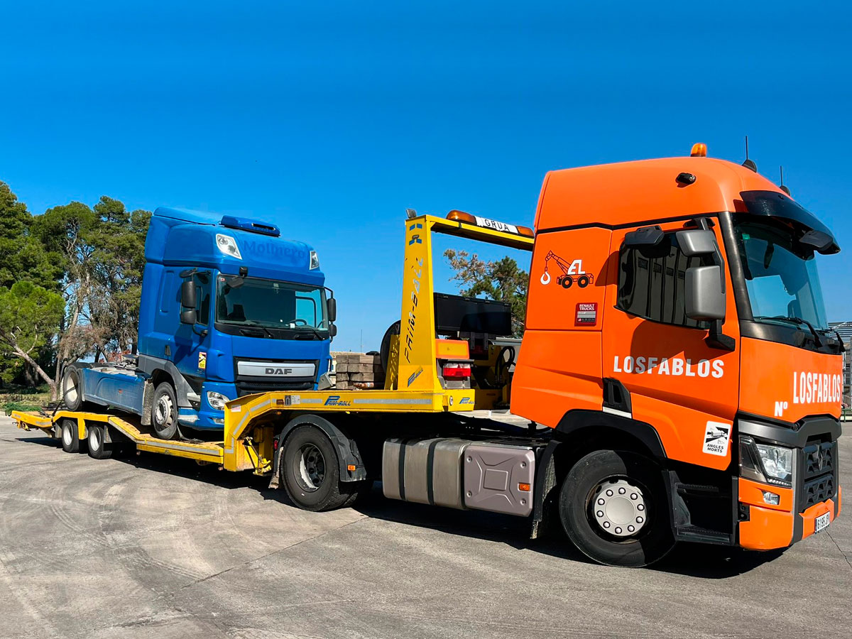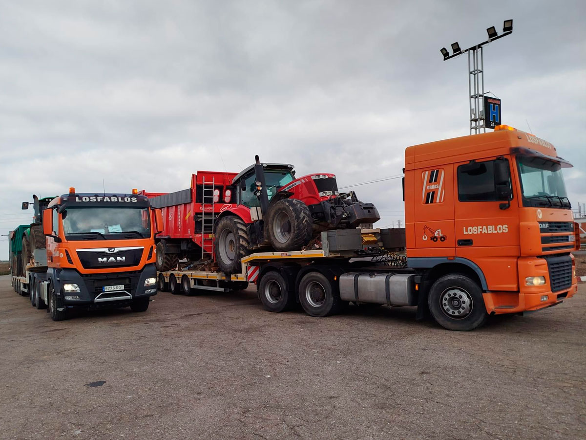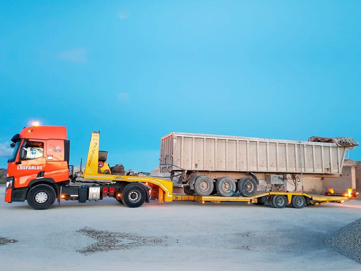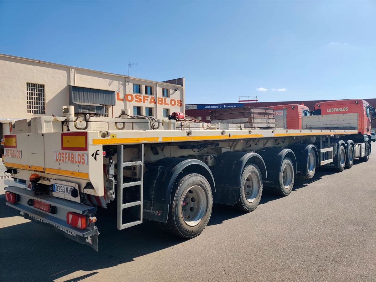 En Grúas Losfablos, con presencia en Zaragoza y Huesca, contamos con equipos de transporte especial diseñados para asumir los retos más exigentes. Nuestra flota está compuesta por camiones configurados con cabeza tractora y semi-remolque, ideales para trasladar maquinaria pesada, así como transportes de grandes dimensiones, ya sea por altura, anchura o longitud que exceden las dimensiones máximas permitidas y que por ello requieren un trato especializado.